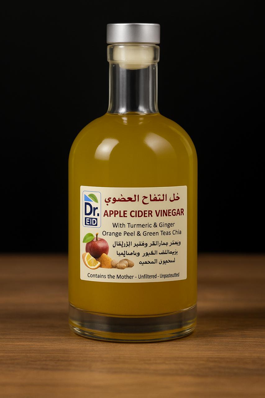 خل التفاح العضوي المطور هو منتج مصنوع من التفاح الطازج المخمر بالاضافة الى اللب الأم - طبيعي غير معالج، مع الكركم والزنجبيل وقشر البرتقال والشاي الأخضر والقرفة ومستخلص الزعفران والشيا يتميز بتركيبته الغنية بالمغذيات والإنزيمات المفيدة. يُعتبر من أفضل الخيارات لتحسين الصحة العامة بالاضافة